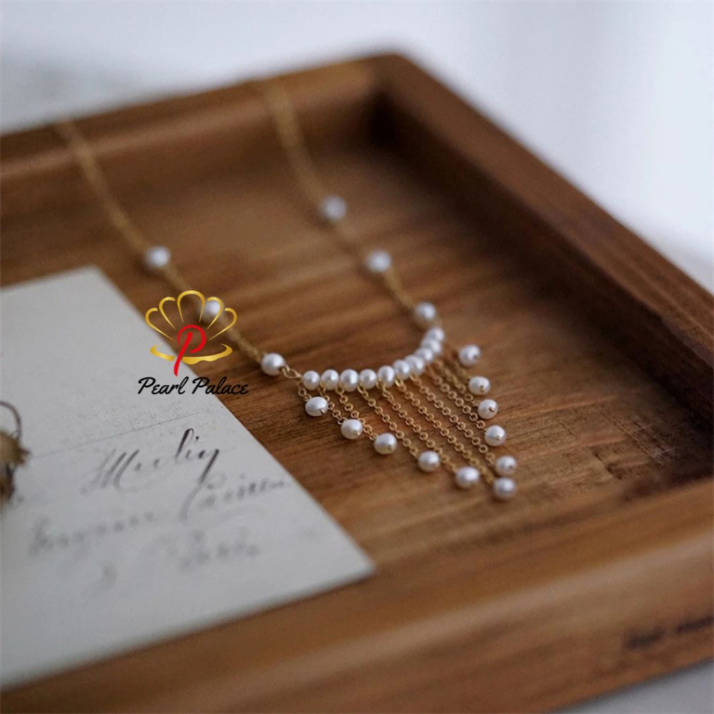 Short Description: Handmade 925 silver tassel necklaces featuring gold-filled accents and natural pearl pendants, combining elegance with artisanal craftsmanship.