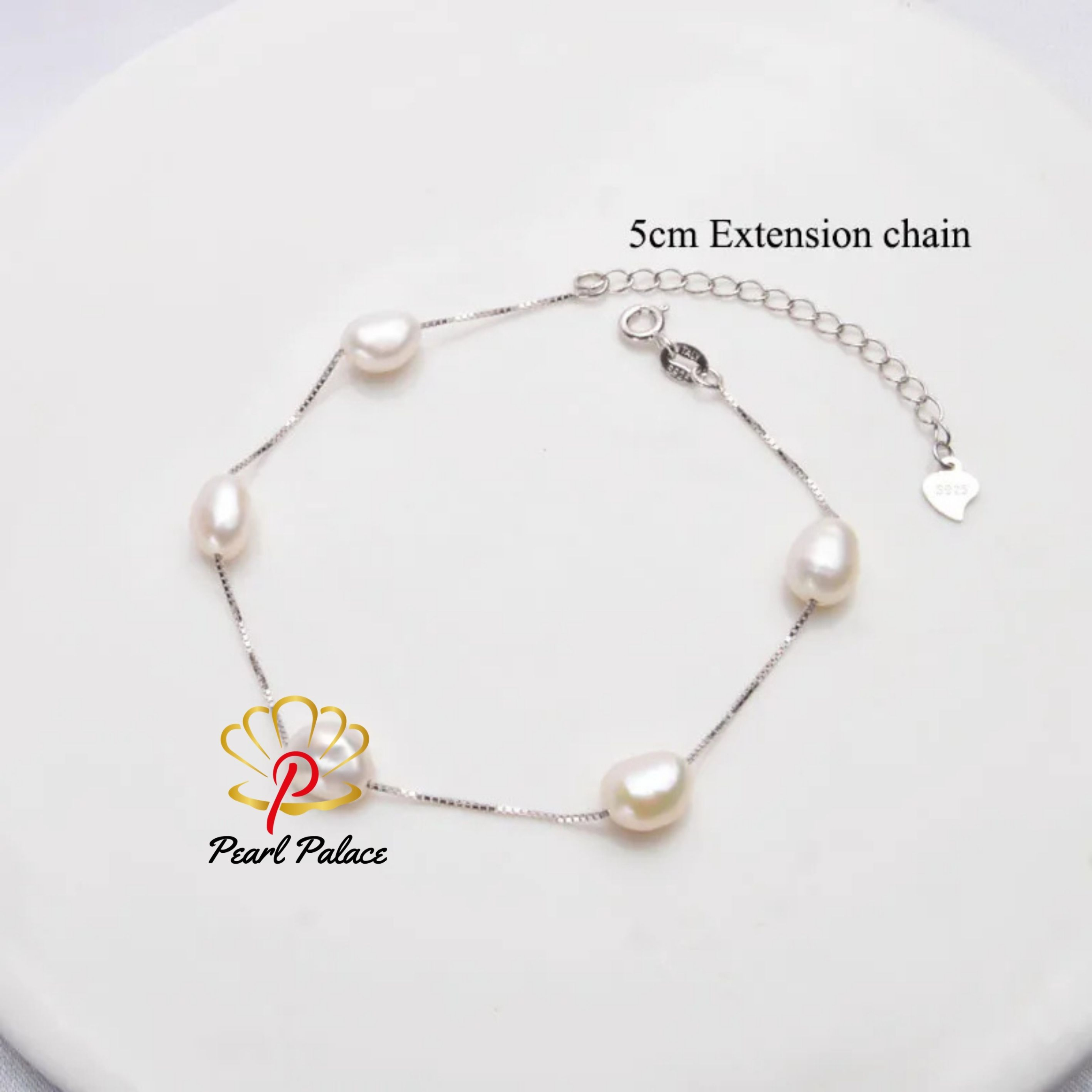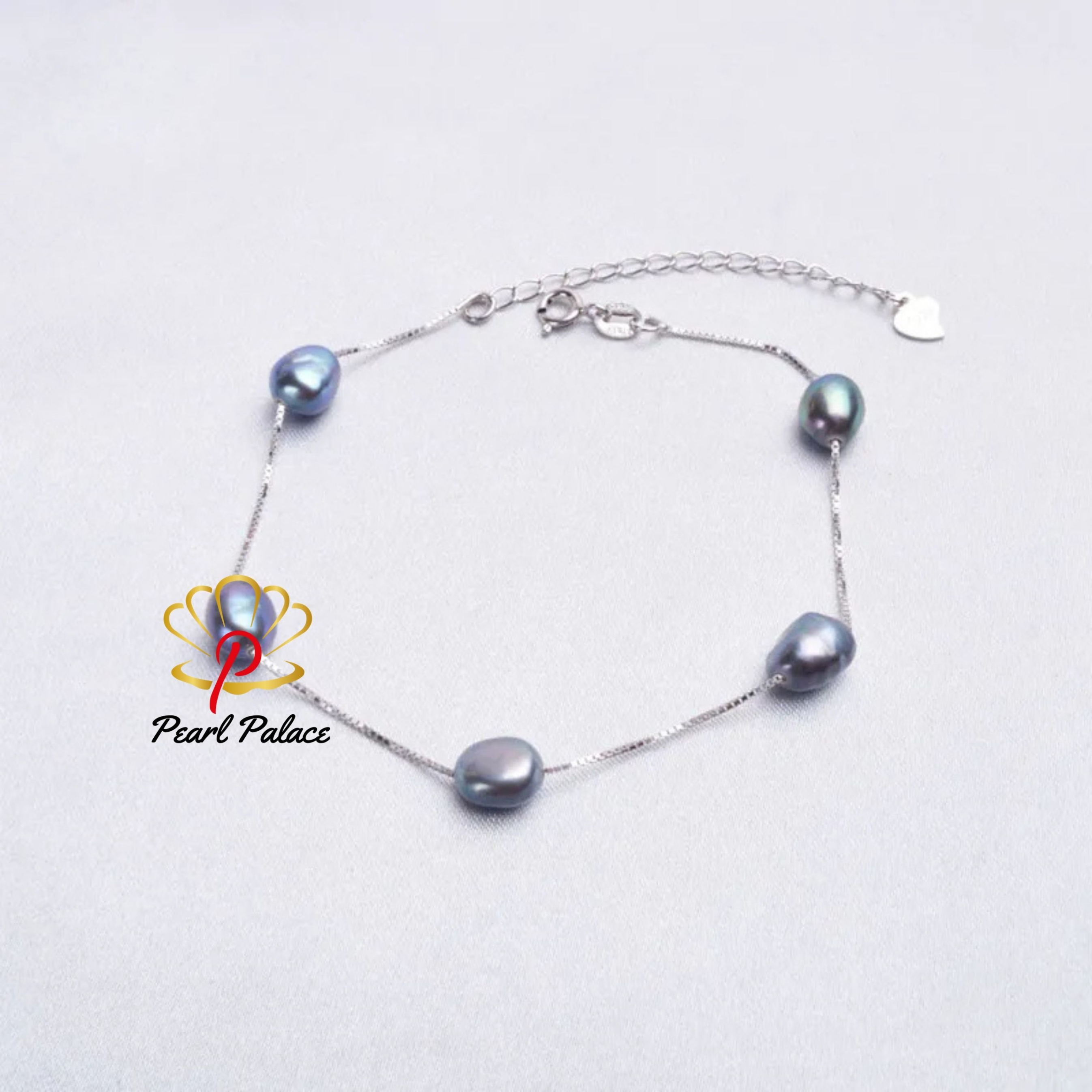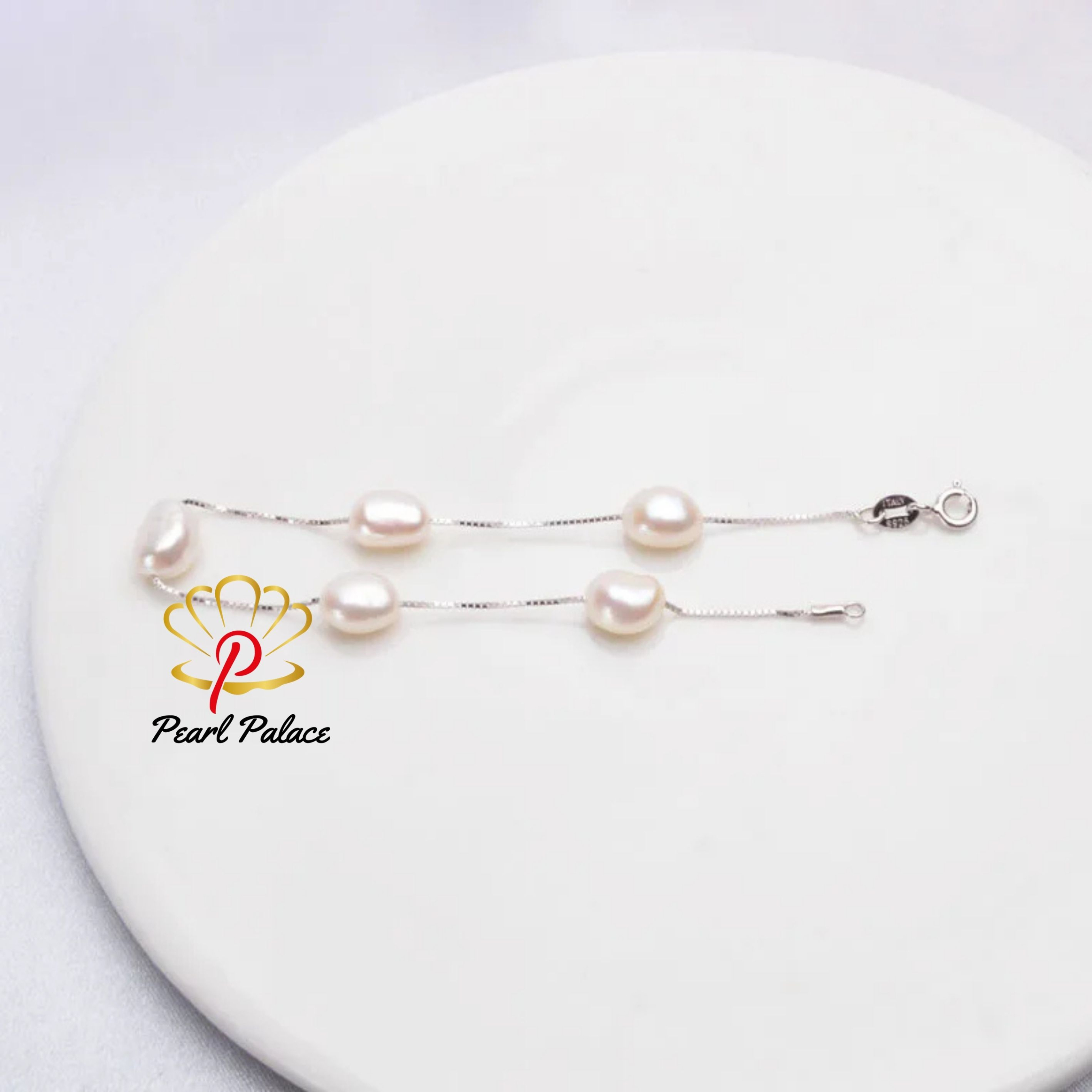 **Genuine 925 Sterling Silver Natural Baroque Pearl Bracelet – Elegant Freshwater Pearl Jewelry for Women**