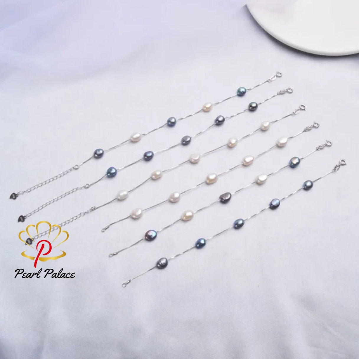 Genuine 925 Sterling Silver Natural Baroque Pearl Bracelet Fashion 6-7mm Freshwater pearl Jewelry For Women Gem Type: Natural Freshwater Pearl Total weight: 4.2g Pearl Shape: Baroque Pearl Colour: White /Blue black Pearl Luster: Very Good Pearl Surface: Few Flaws Pearl Size: 6-7mm Length: 18cm/18cm+5cm(Extension chain) Metal Material: 100% 925 Sterling Silver, Metal stamp: S925