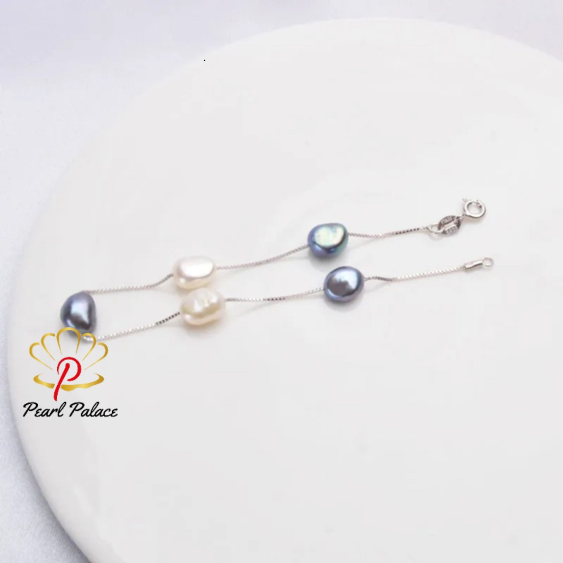 This bracelet features a delicate silver chain that pairs perfectly with the natural baroque pearls, making it a captivating accessory for both everyday wear and special occasions.