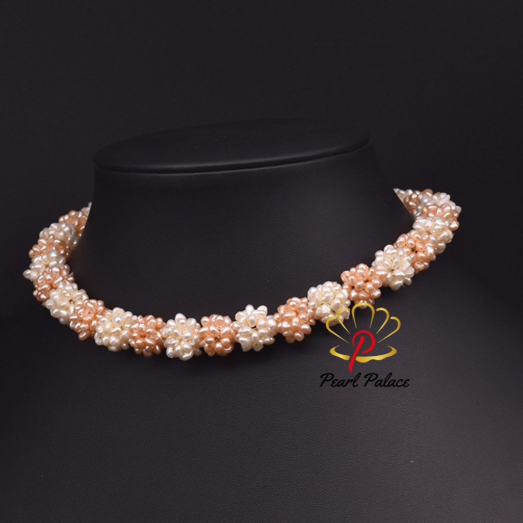 Product name: Natural Pink White Small Pearl Flower Collar Romantic Fashion Choker Necklace For Women Party Statement Jewelry. Pearl Size: 7-8 mm Pearl Grade: AAA Pearl Length 17-18 Inch.