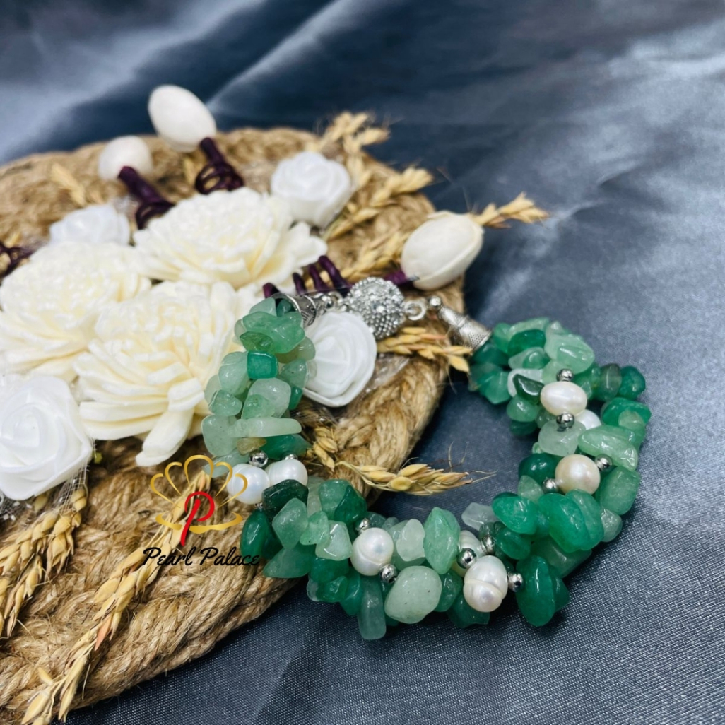 Serenity in Green: Panna Stone and Pearl Harmony Bracelet” Size :7-8 mm adjustable grade :AAA