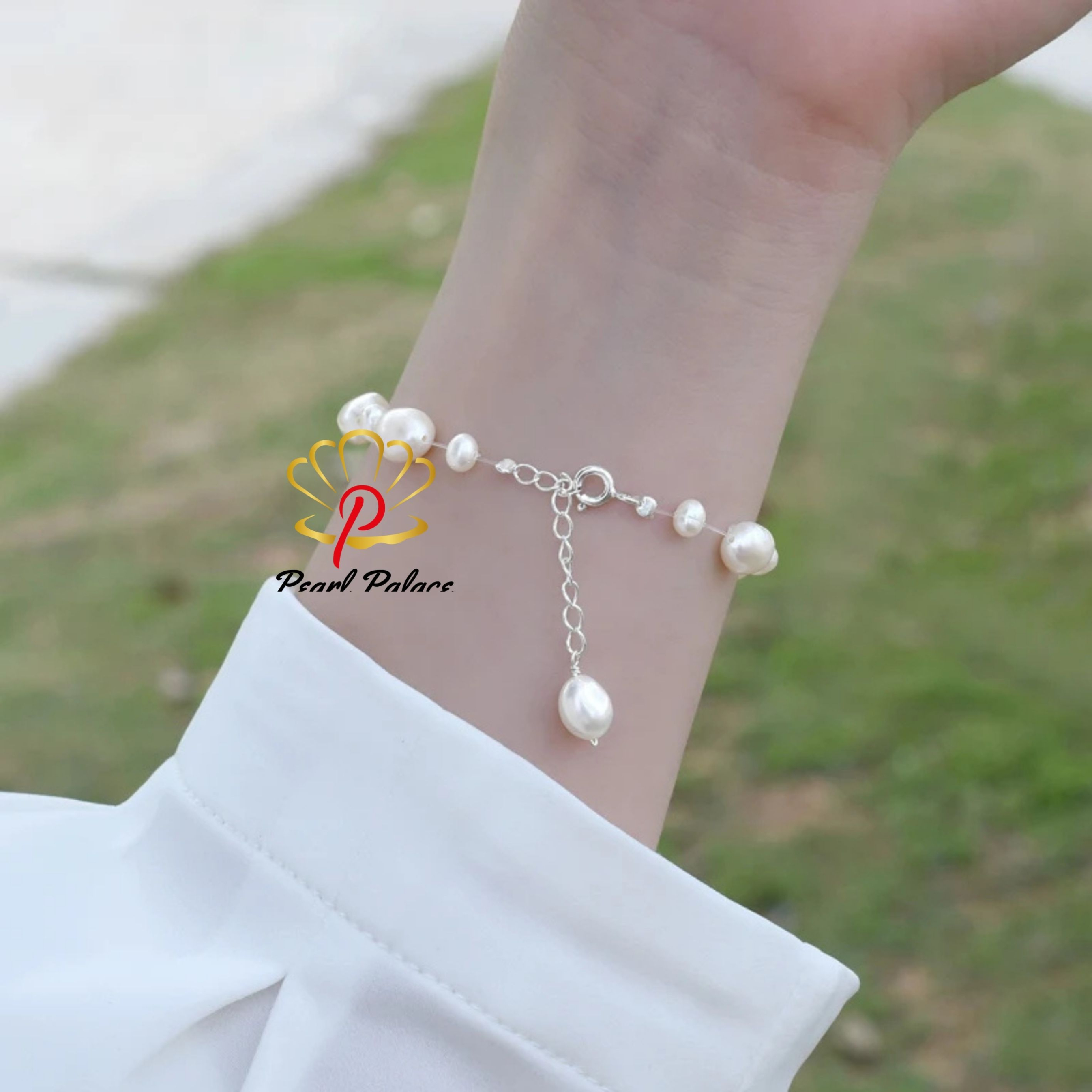 Designed with a secure **925 Sterling Silver Button clasp**, this bracelet provides durability and a touch of luxury. Its minimalist style and unique pearl shapes make it a distinctive accessory that complements both casual and formal outfits.