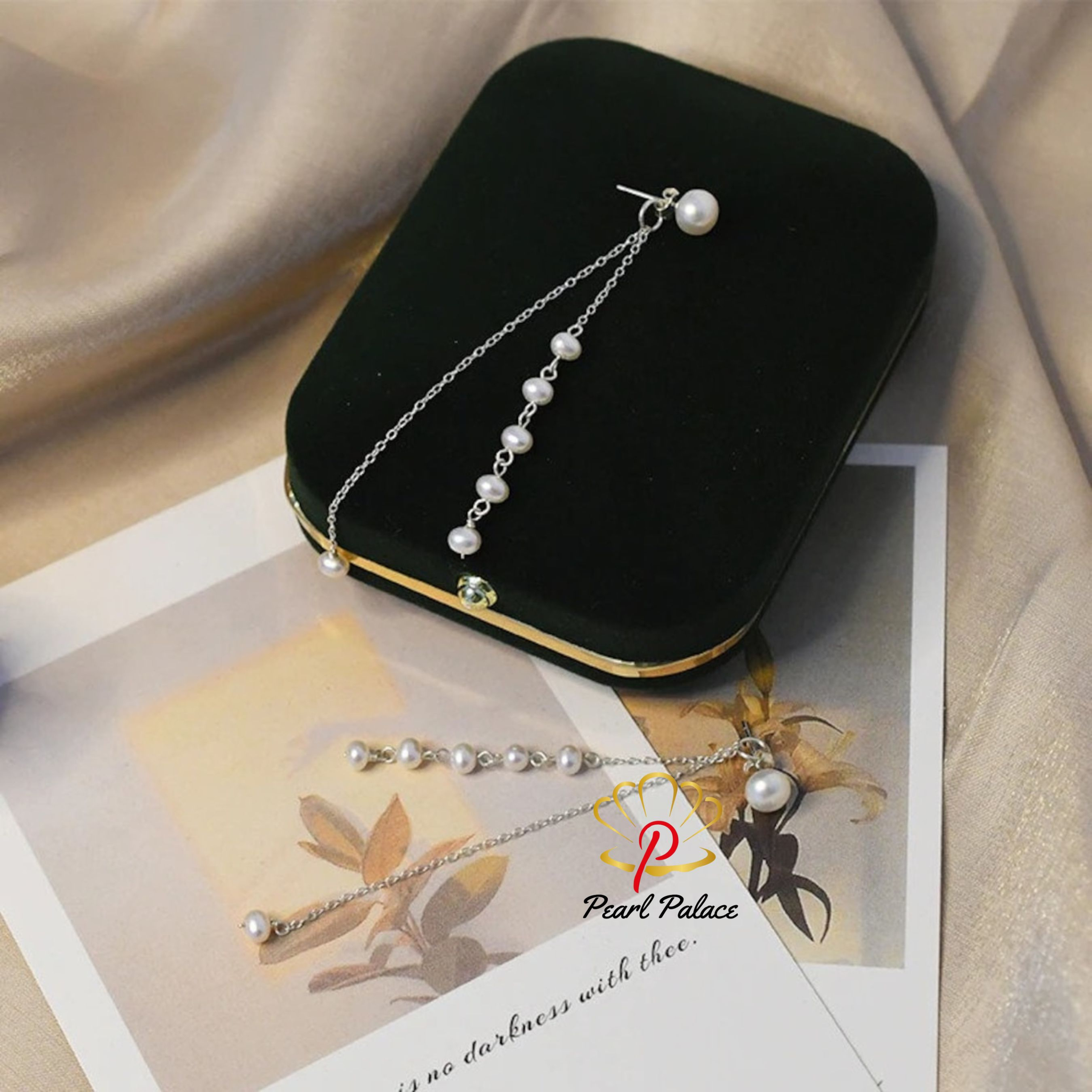 With a delicate 8-centimeter length, these earrings offer a graceful, elongated silhouette that enhances both casual and formal ensembles. The soft, natural glow of the pearls combined with the fluid tassel design makes them a statement piece, perfect for special occasions or everyday luxury.