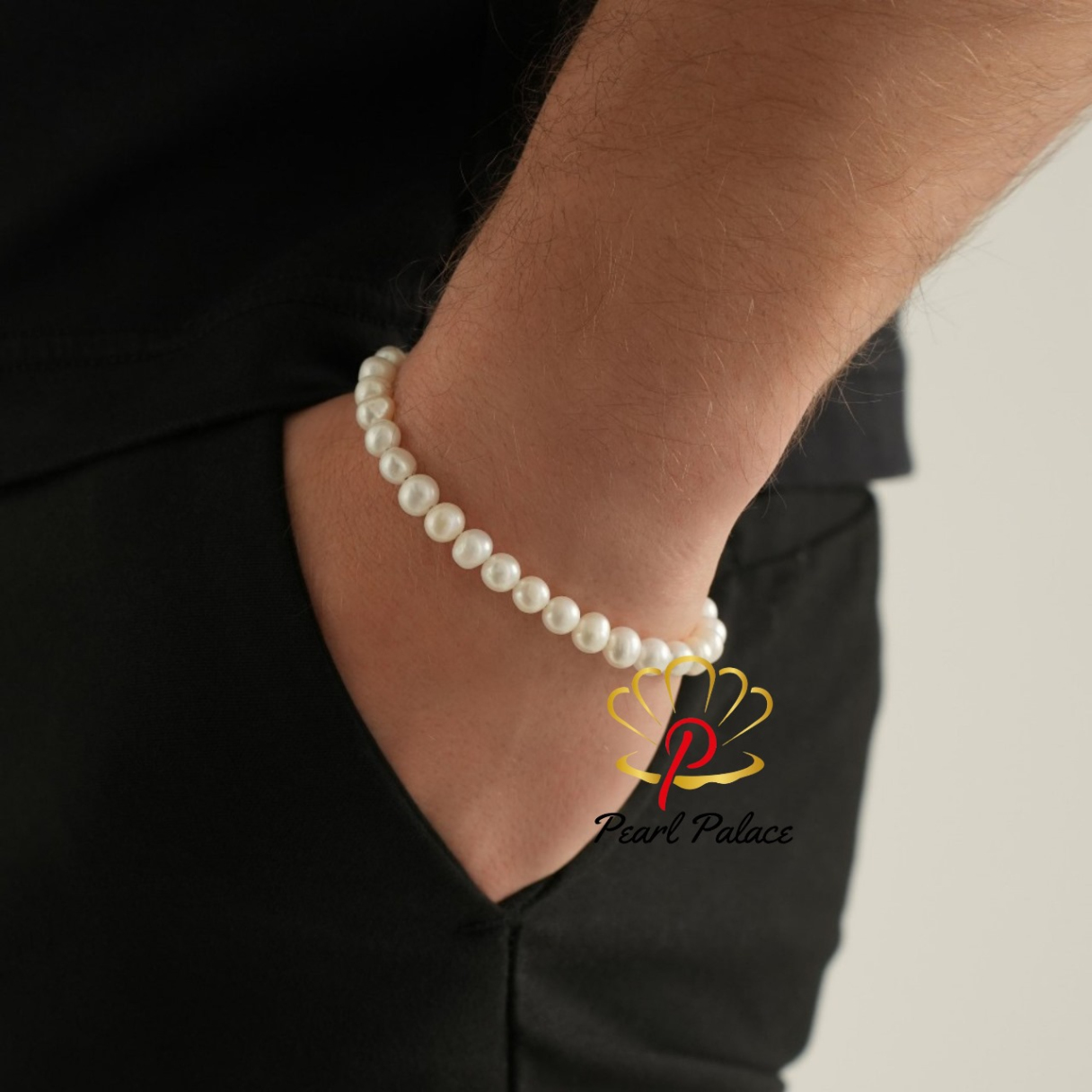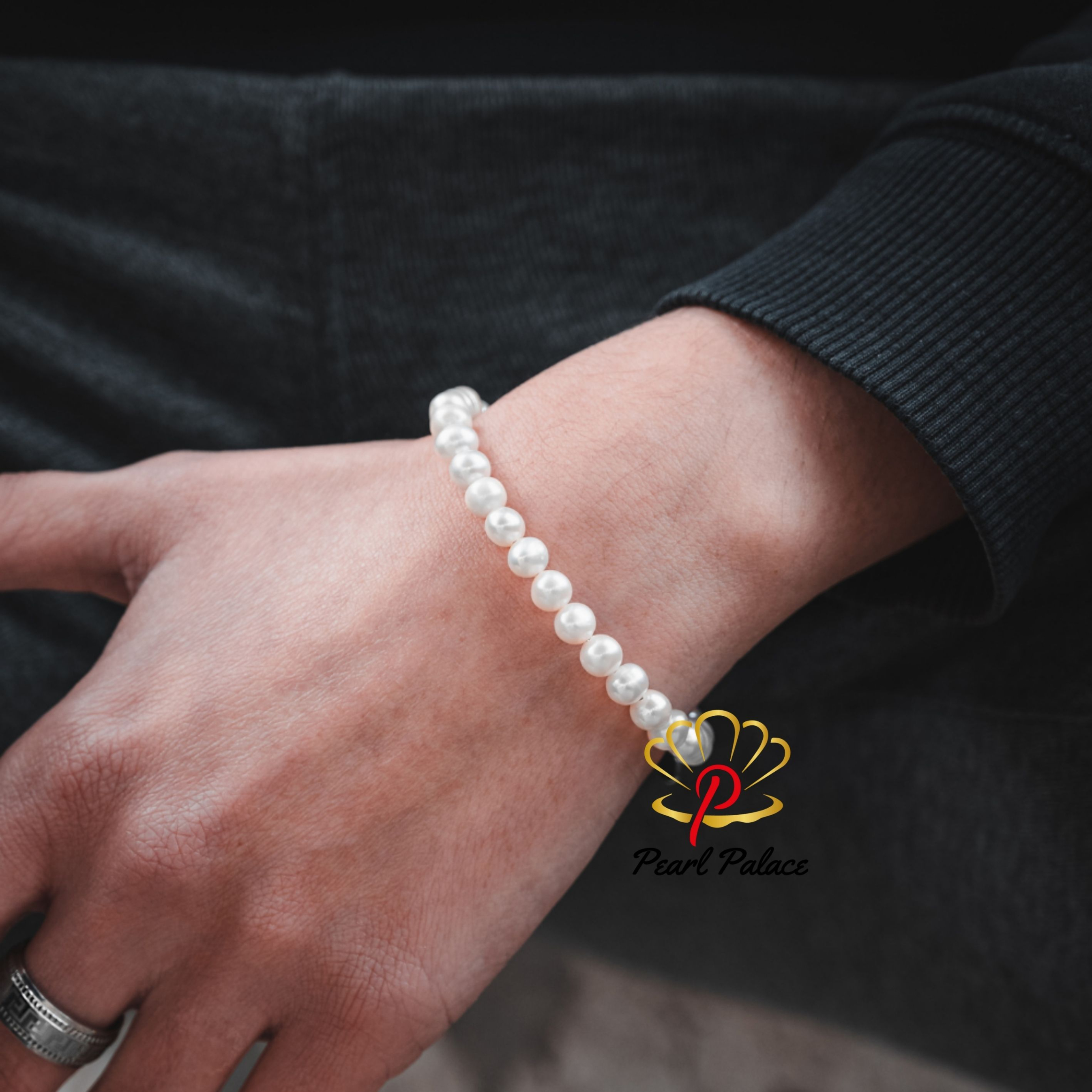 This pearl bracelet is a beautiful combination of simplicity and sophistication, making it a must-have for any jewelry collection.