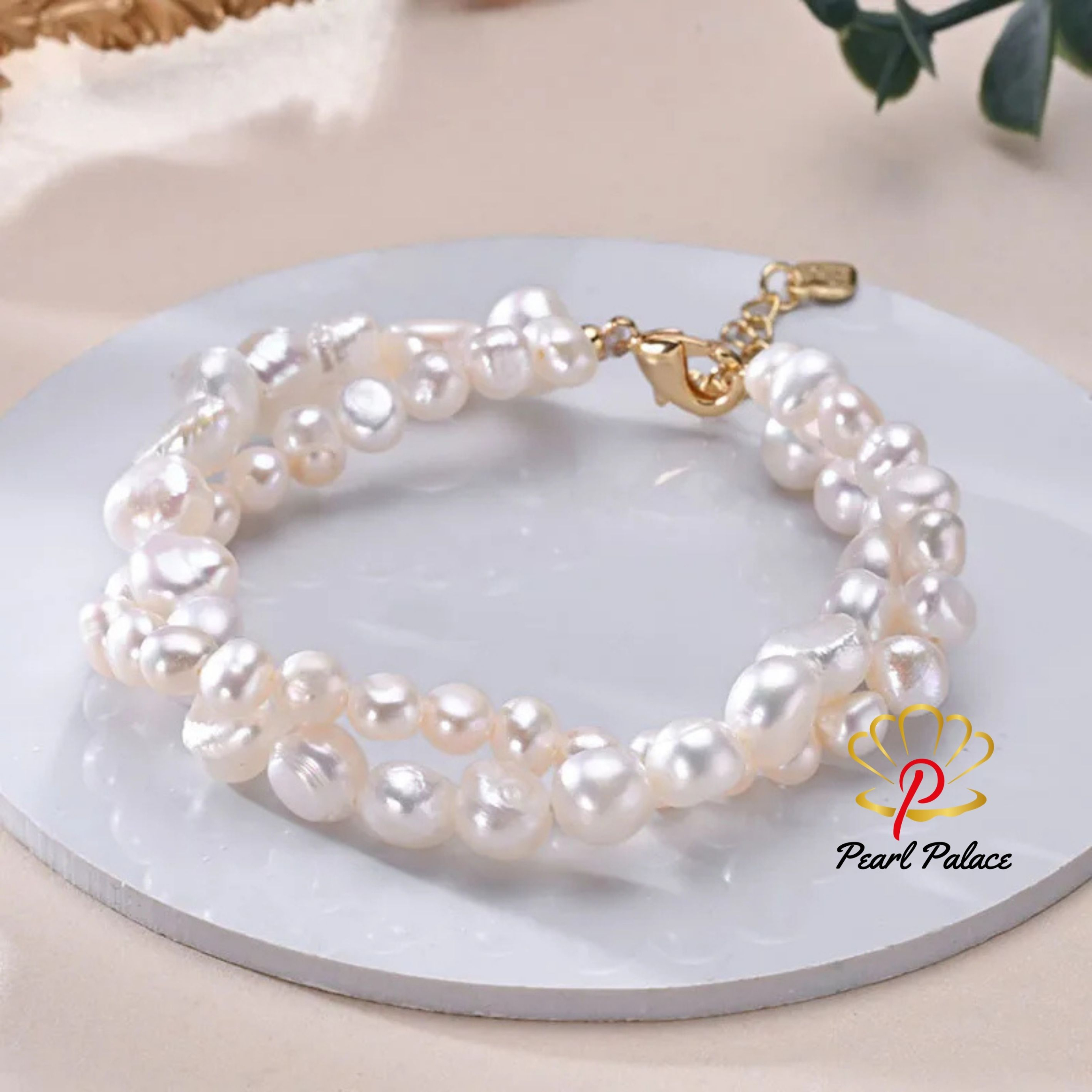 Freshwater 5-6mm 8-9mm White Pearl Double Baroque Bracelet Main Stone: Freshwater pearl Pearl Color: White Pearl Size: 5-6mm 8-9mm Material: 925 Sterling Silver with gold plated