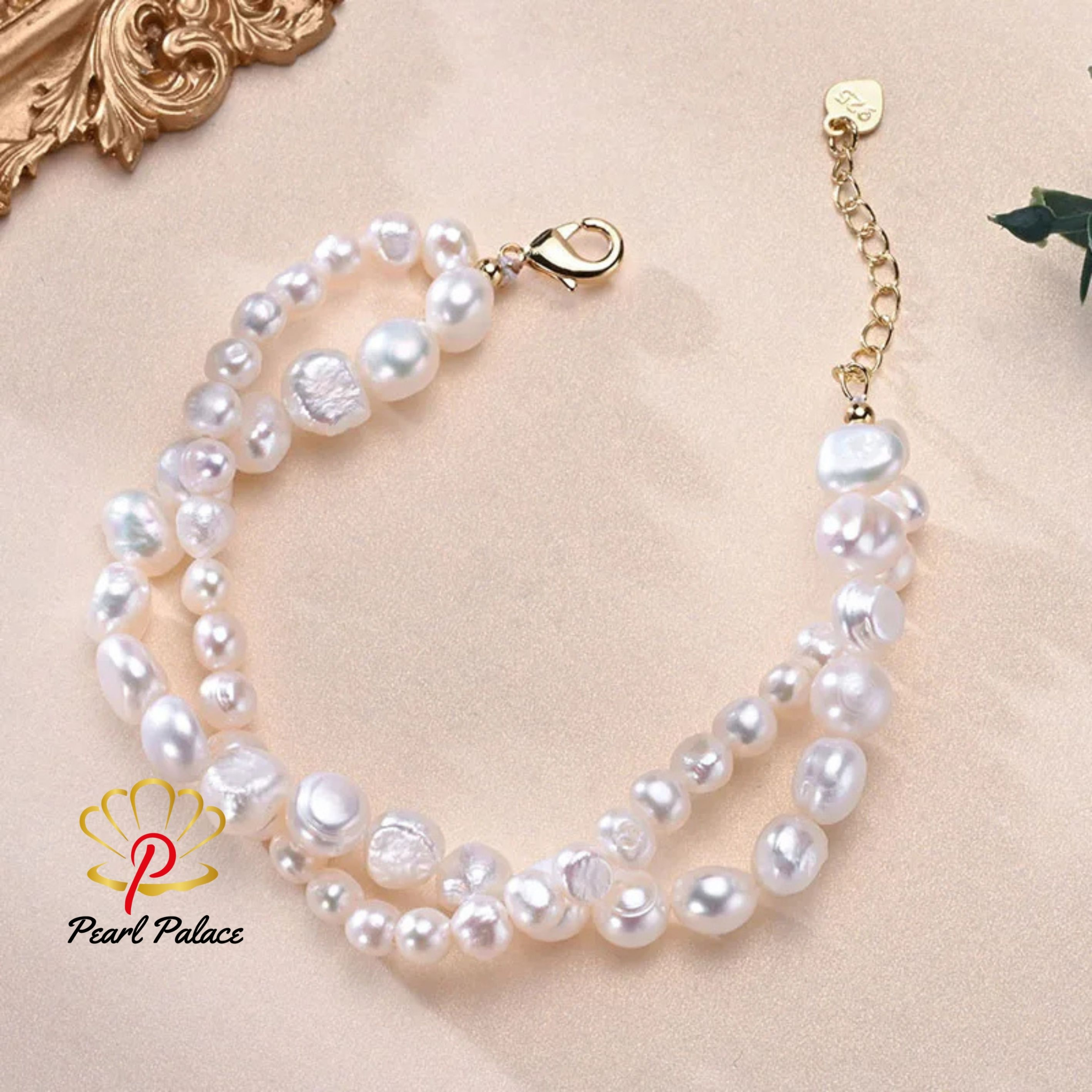 This elegant double-layered bracelet features baroque freshwater pearls in 5-6mm and 8-9mm sizes, creating a refined and distinctive look. Crafted with 925 sterling silver, it’s a perfect addition to any jewelry collection.