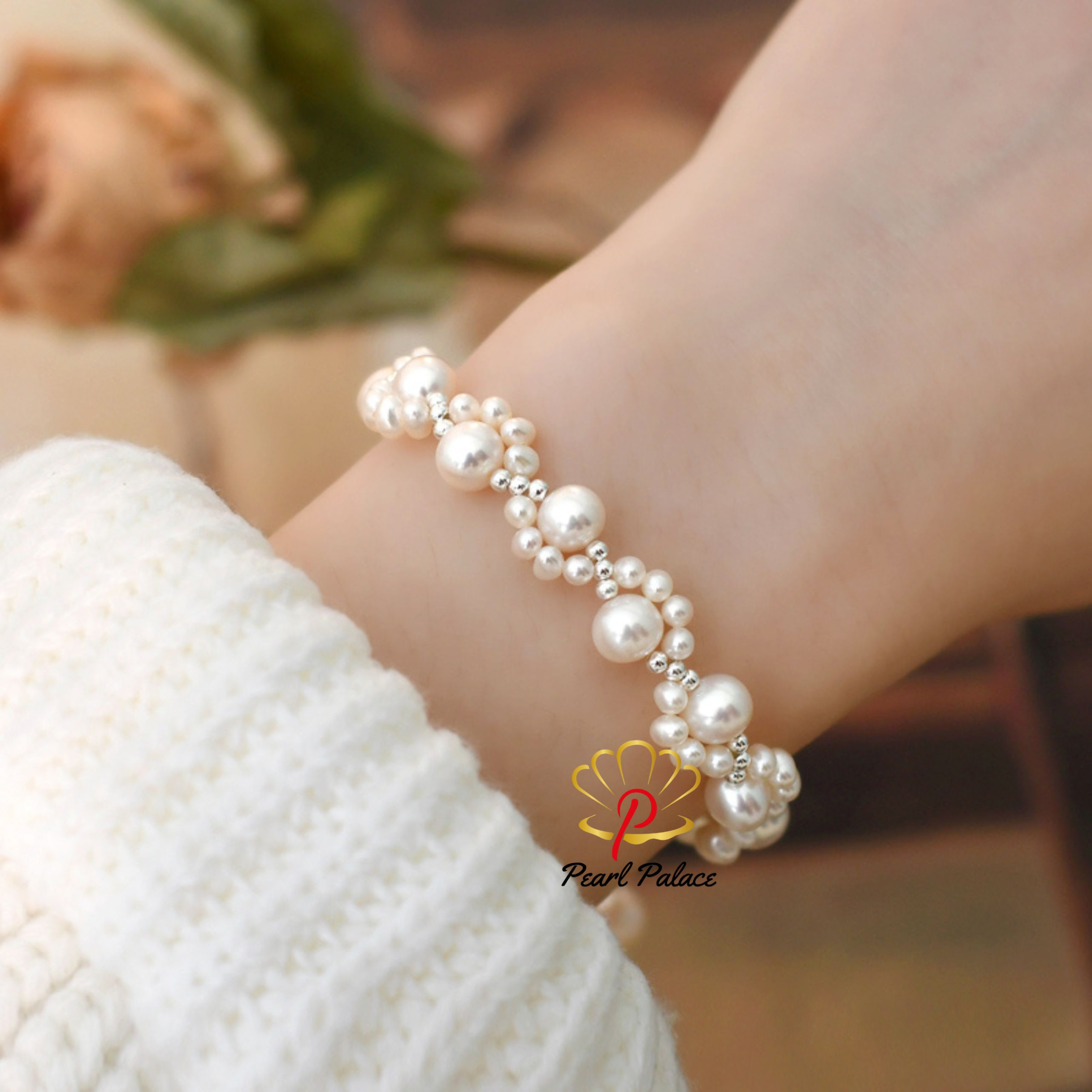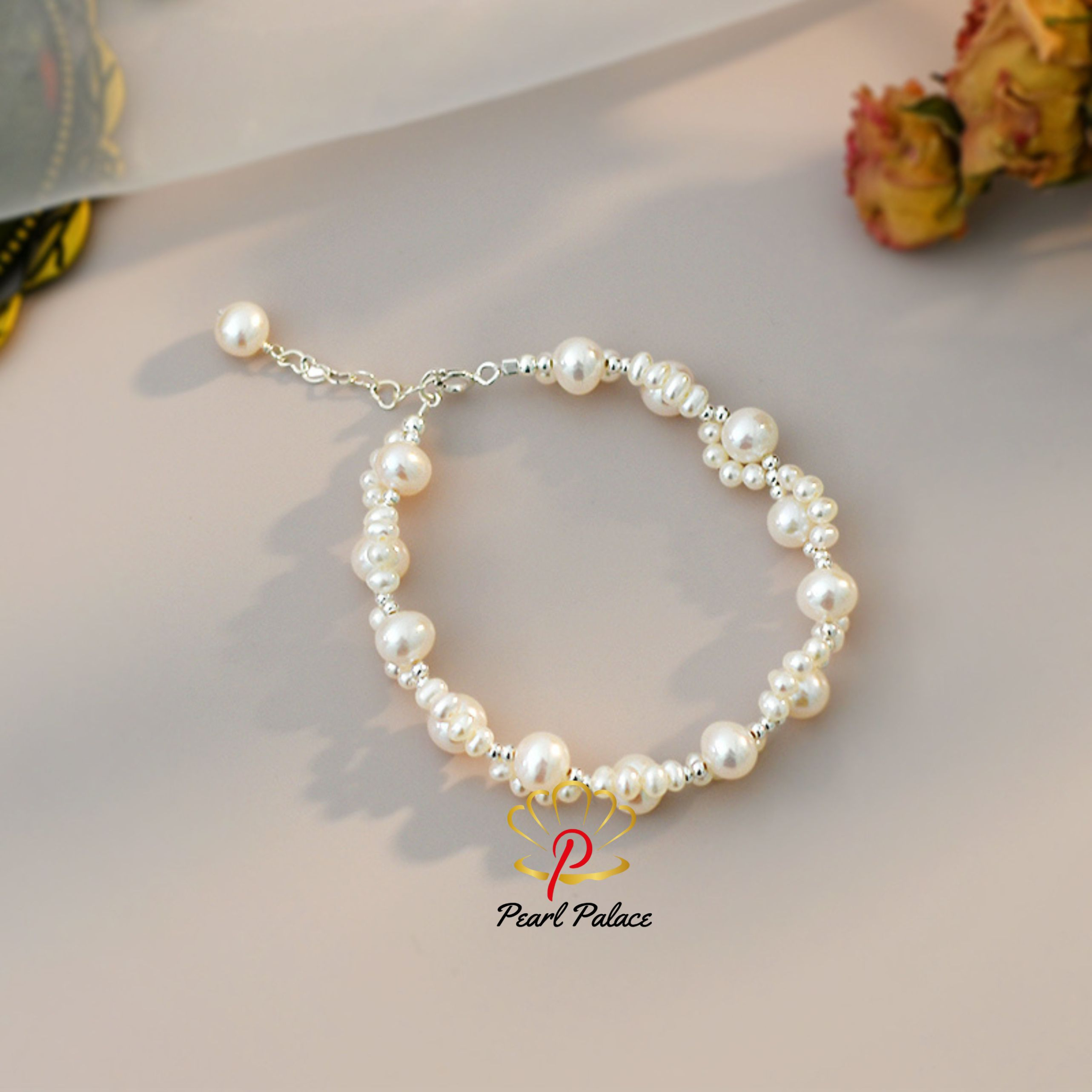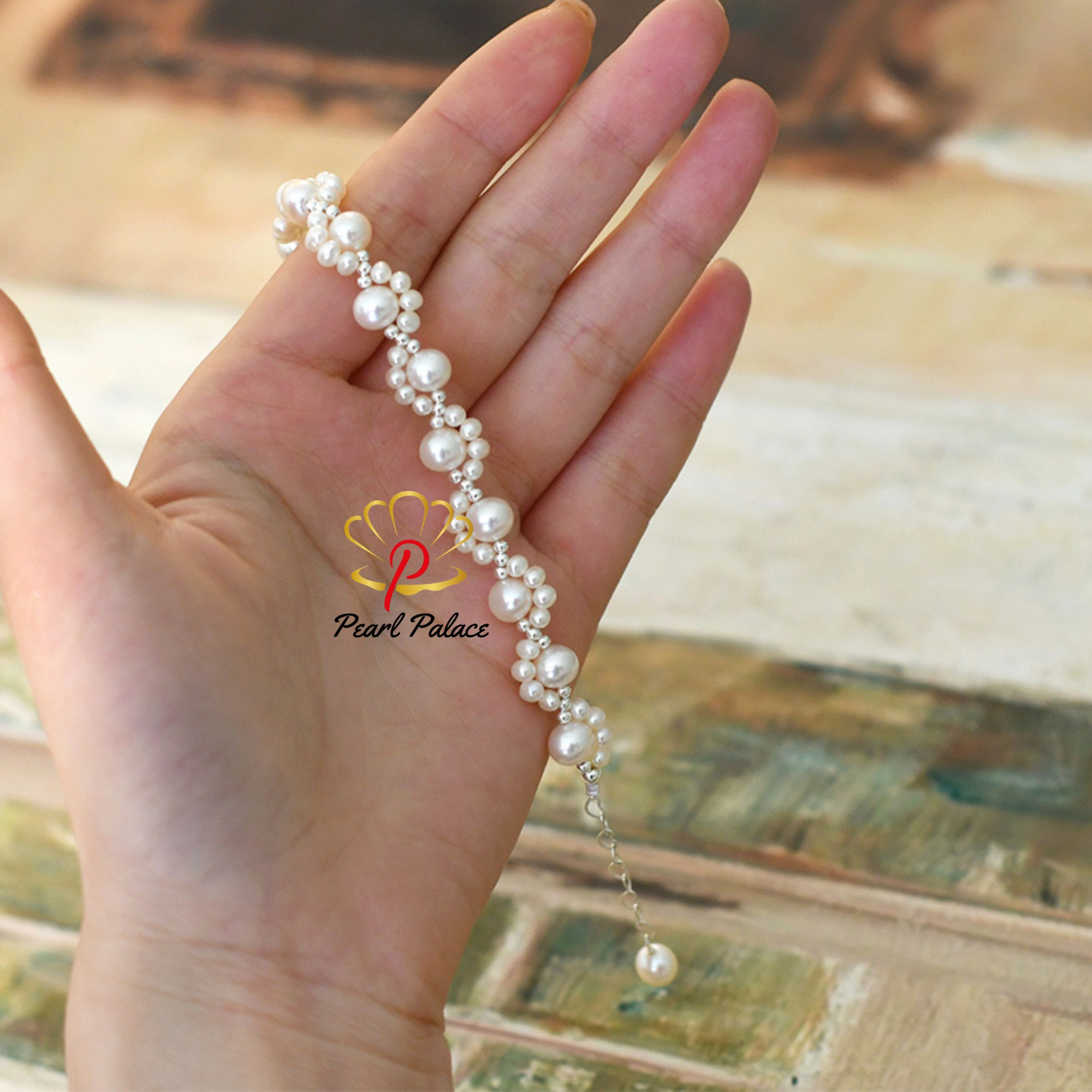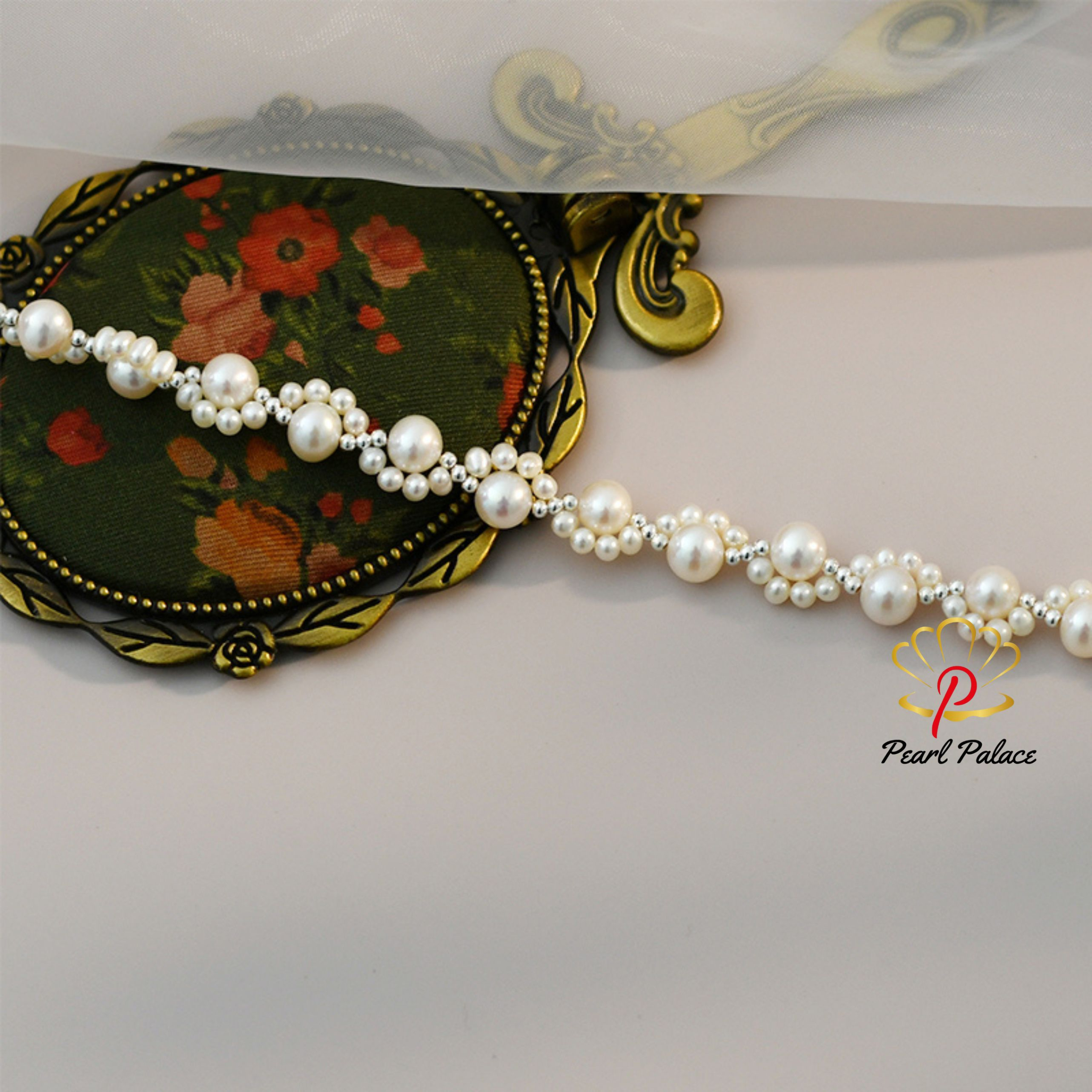 Natural Freshwater Pearl Cat's Claw Braided Bracelet 925 Sterling Silver for Women Gift Pearl Size: 2-3mm/7-8mm Length: 15.5cm/16.5cm/17.5cm( Add extension chain 3cm )