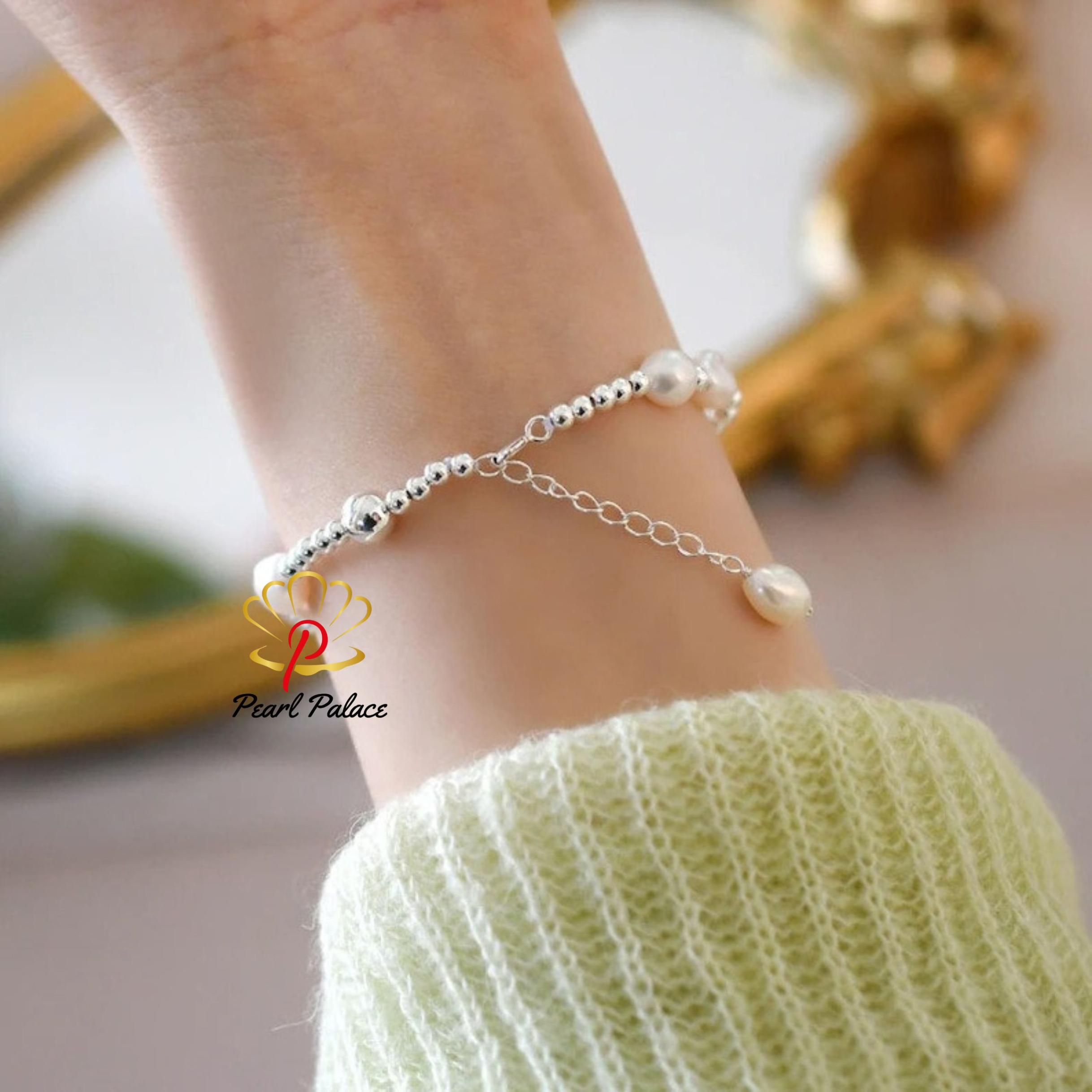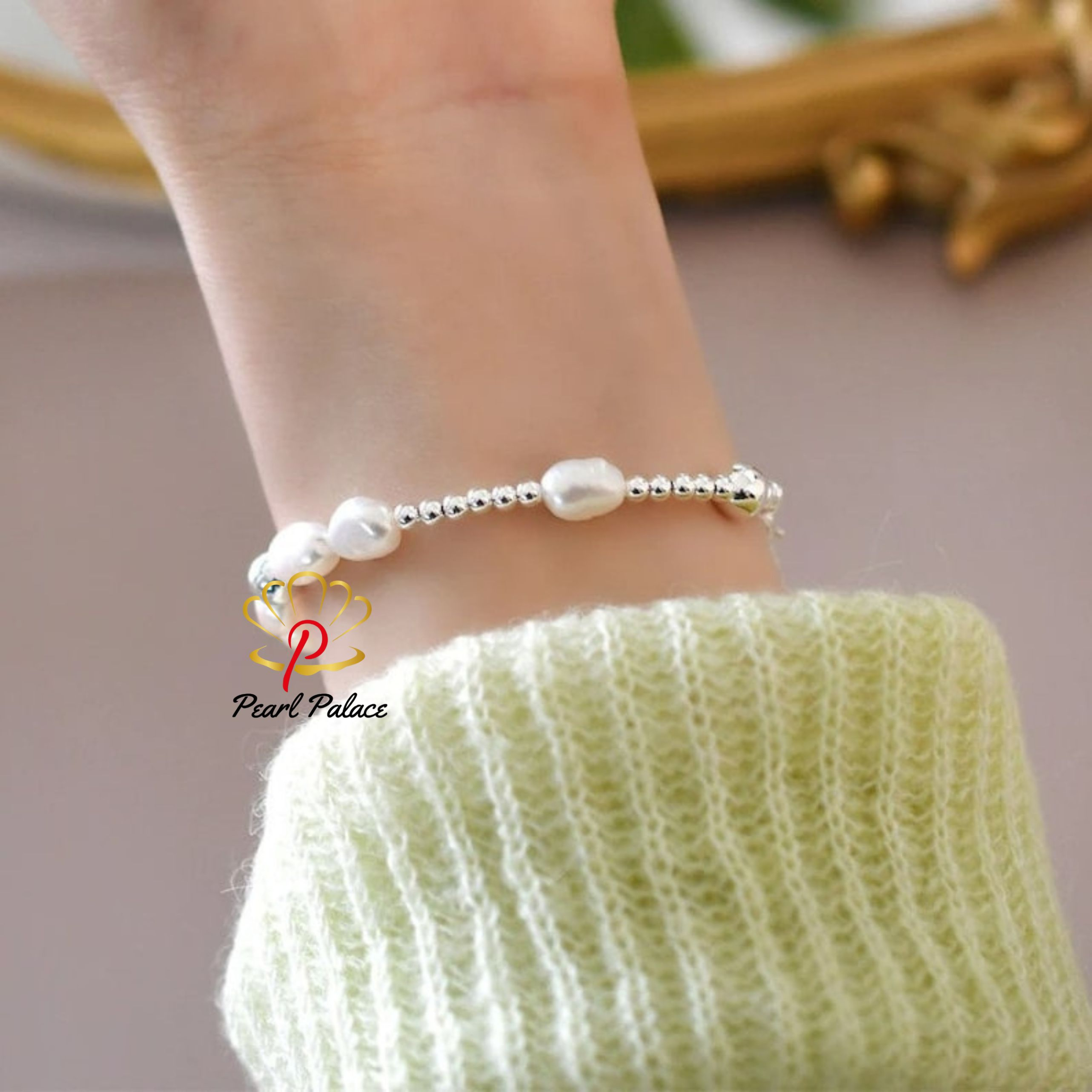 Baroque Pearl and Sterling Silver Bracelet pearl size: 4-5 mm