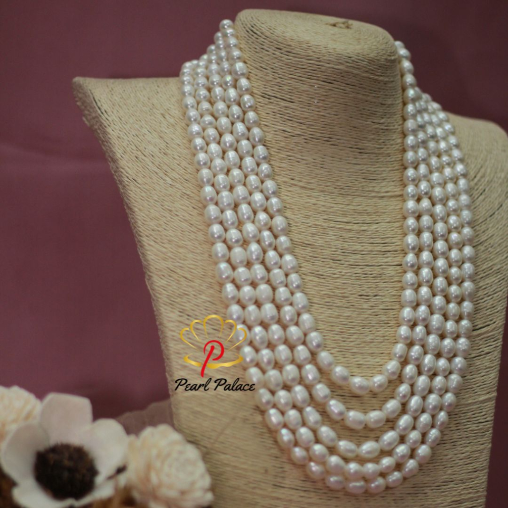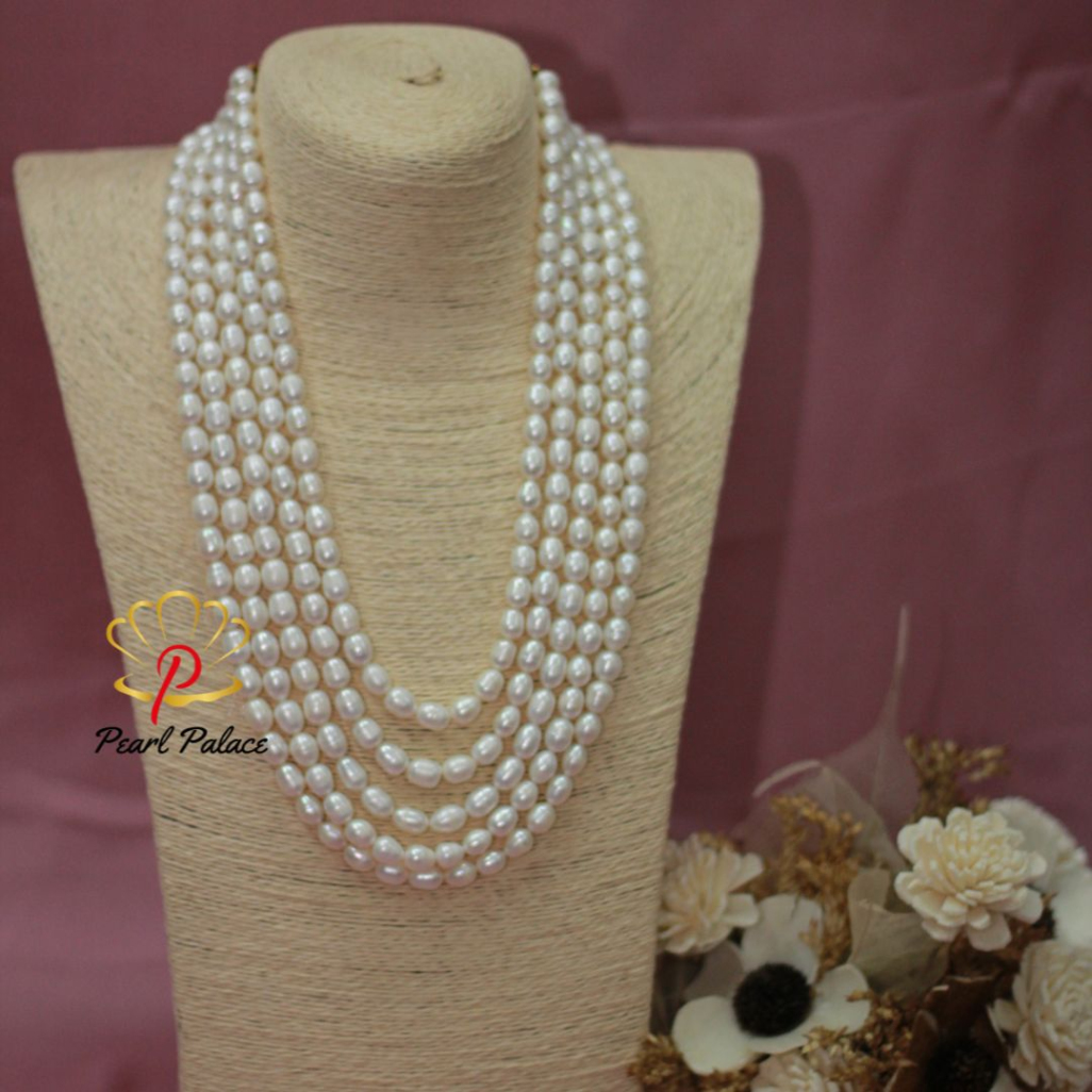 Product name: White Rice Pearl 5-Layer Necklace. Pearl Size: 7-8 mm Pearl Grade: AAA Pearl Length 17-25 Inch.