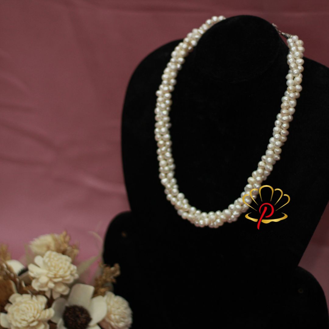 An elegant and stylish multi-layered necklace featuring twisted strands of premium freshwater pearls. The intricate design enhances its sophistication, making it perfect for both formal and special occasions.