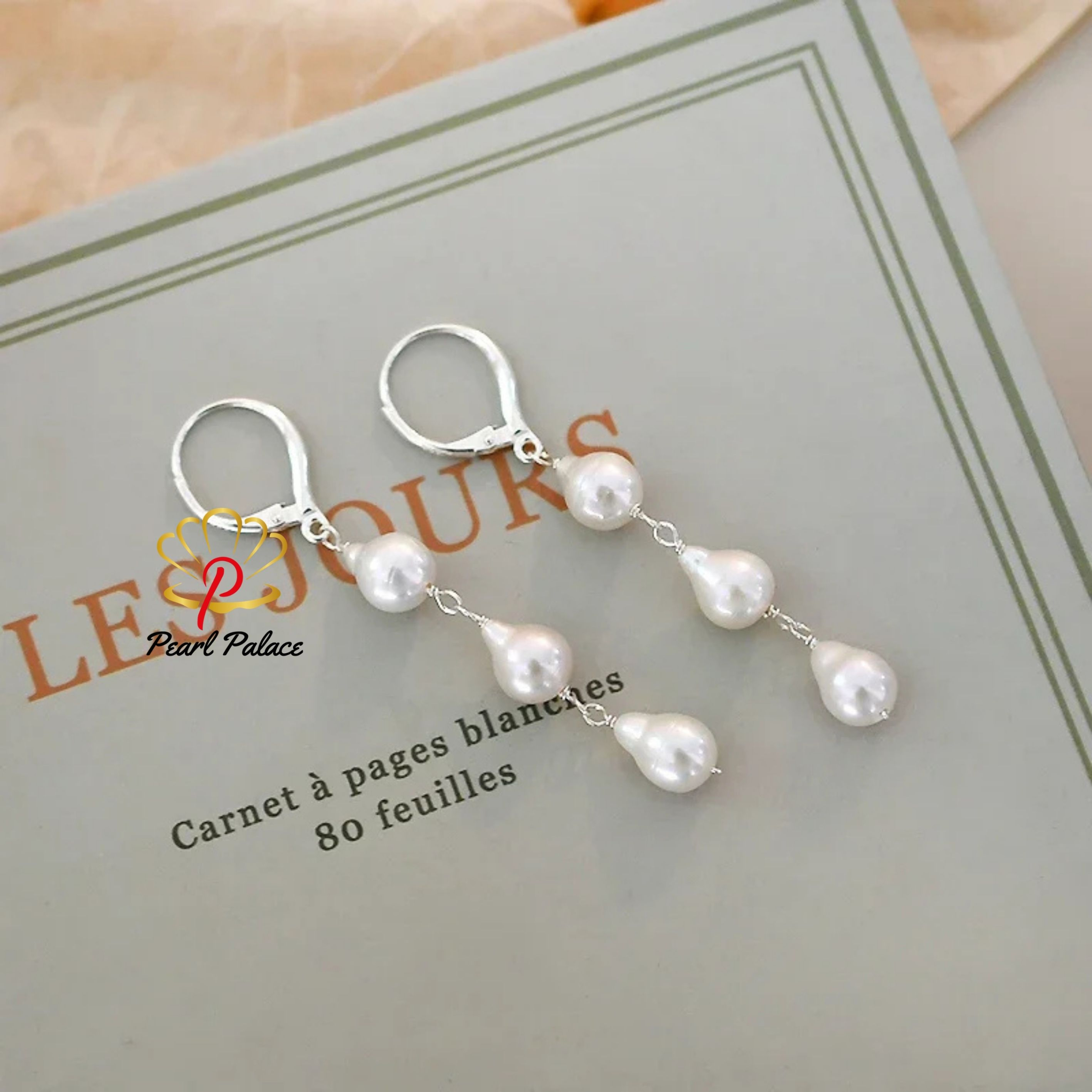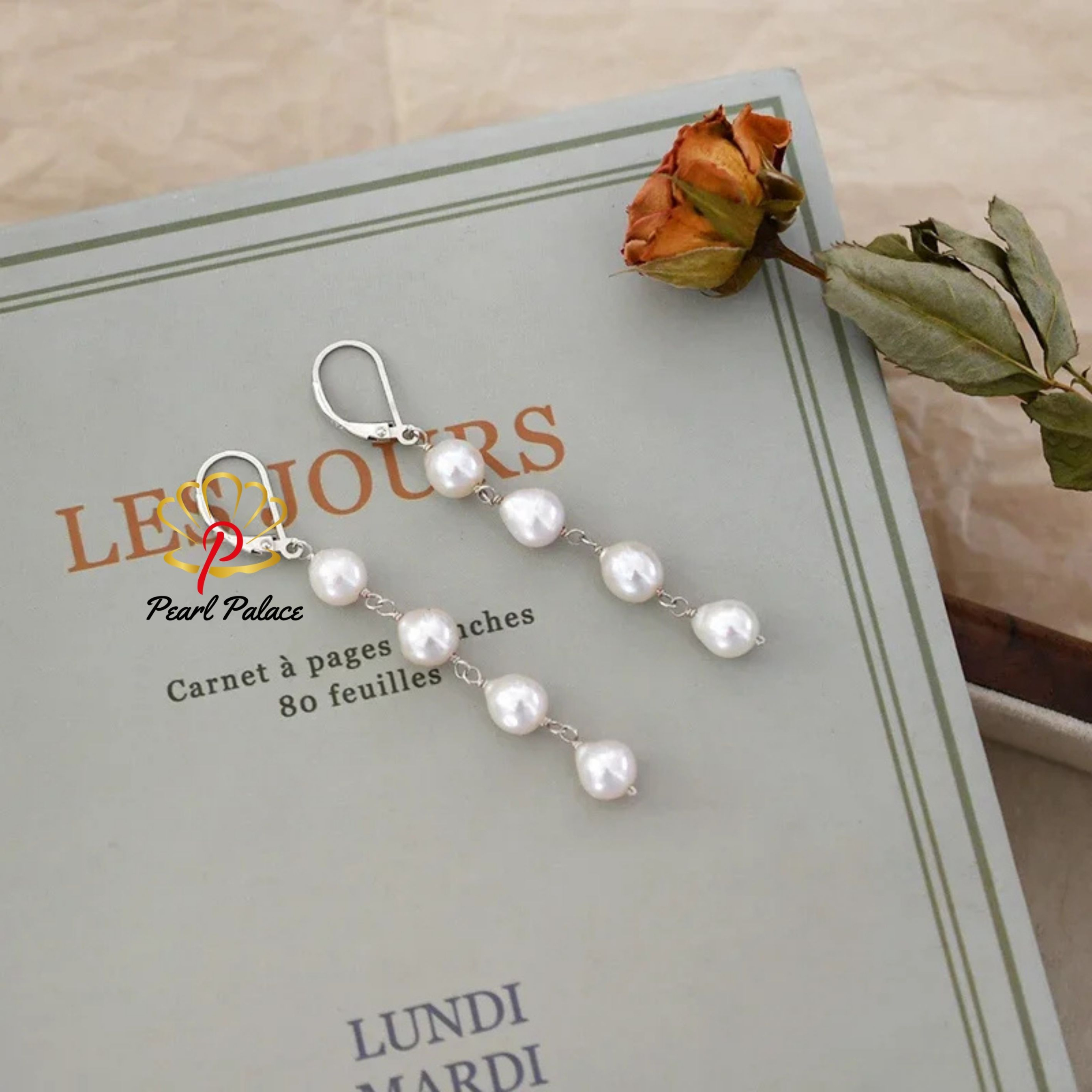 **925 Sterling Silver Natural Baroque Freshwater Pearl Earrings – Elegant Wedding Pendant Earrings, Fashion Korean Jewelry**