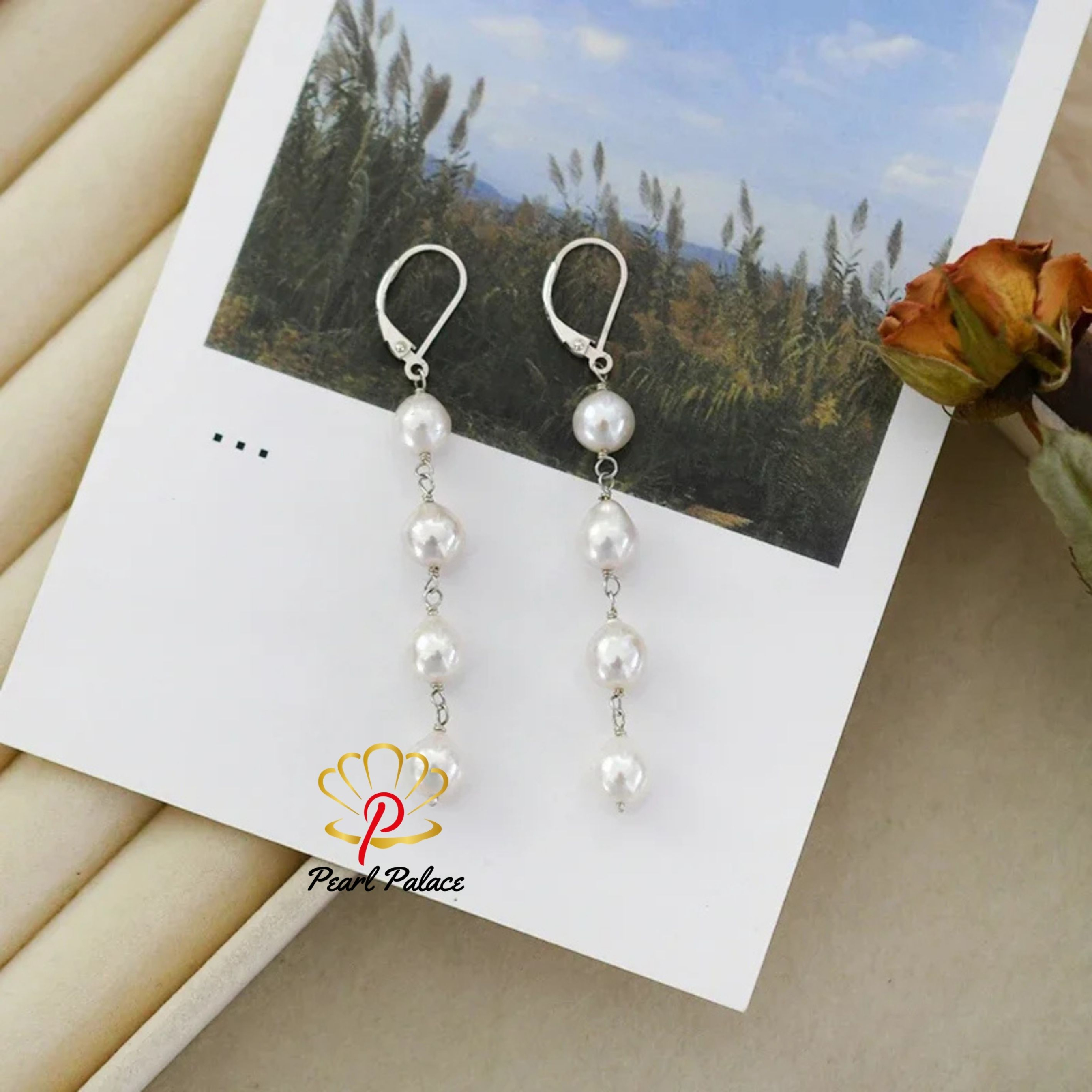 These earrings are a perfect statement piece for weddings or special occasions, combining timeless baroque pearls with the elegance of sterling silver. The unique shape and elegant design make these earrings a versatile addition to any jewelry collection.